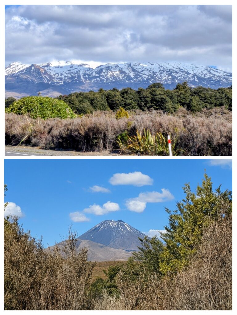 For a slo-mo video of the falls click HERE. Our drive back to the B&B yielded great views of Mt. Ruapehu (with more clouds around the flat summit) and the cone shaped Mt. Ngauruhoe.