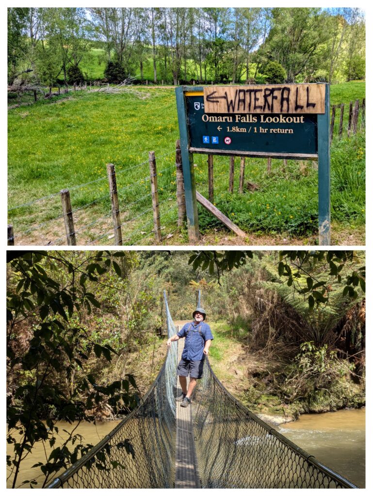 A 30 min. hike through forest and along paddocks brought us to the overlook above the impressive falls.