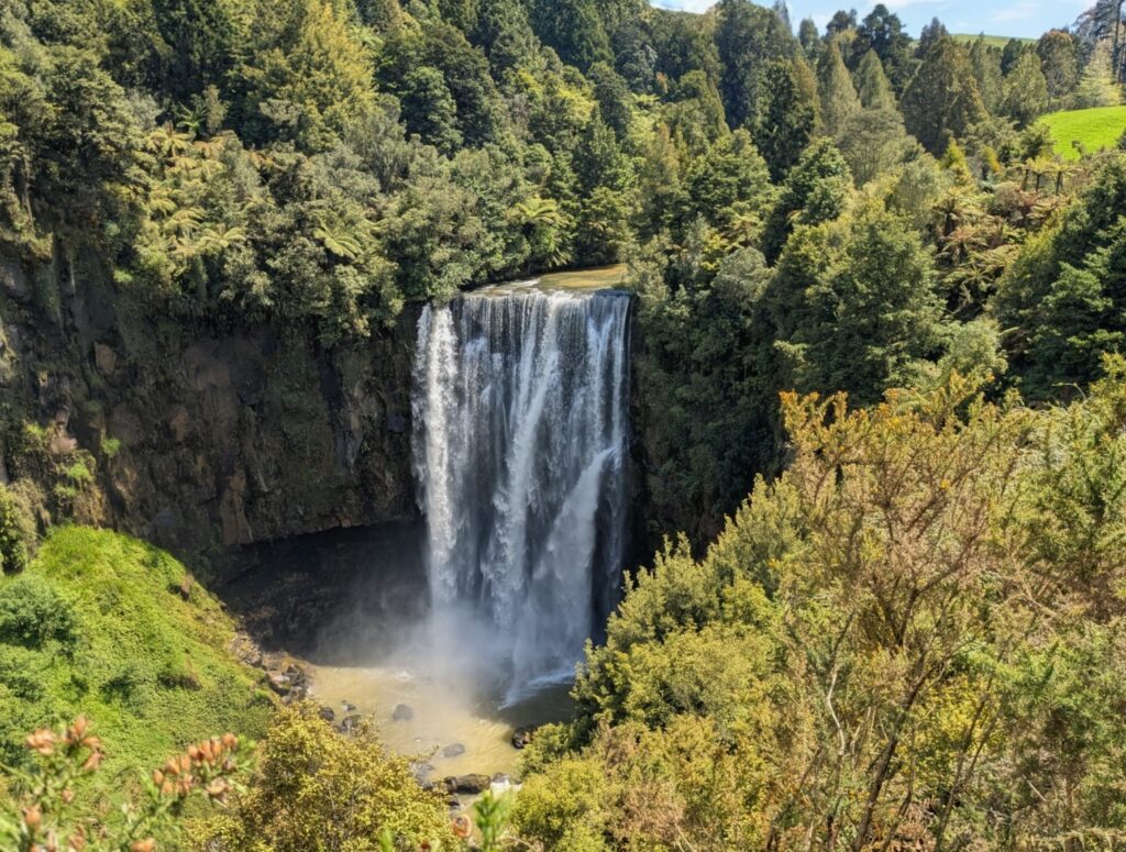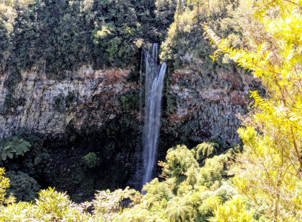 We finally reached Tupapakurua falls which is impressive, except that it is across a deep and wide gorge! We couldn’t see the bottom! The hike through the forest was worth it though!After hiking back down the trail we drove in search of another falls, this one closer to the highway, but much more popular.