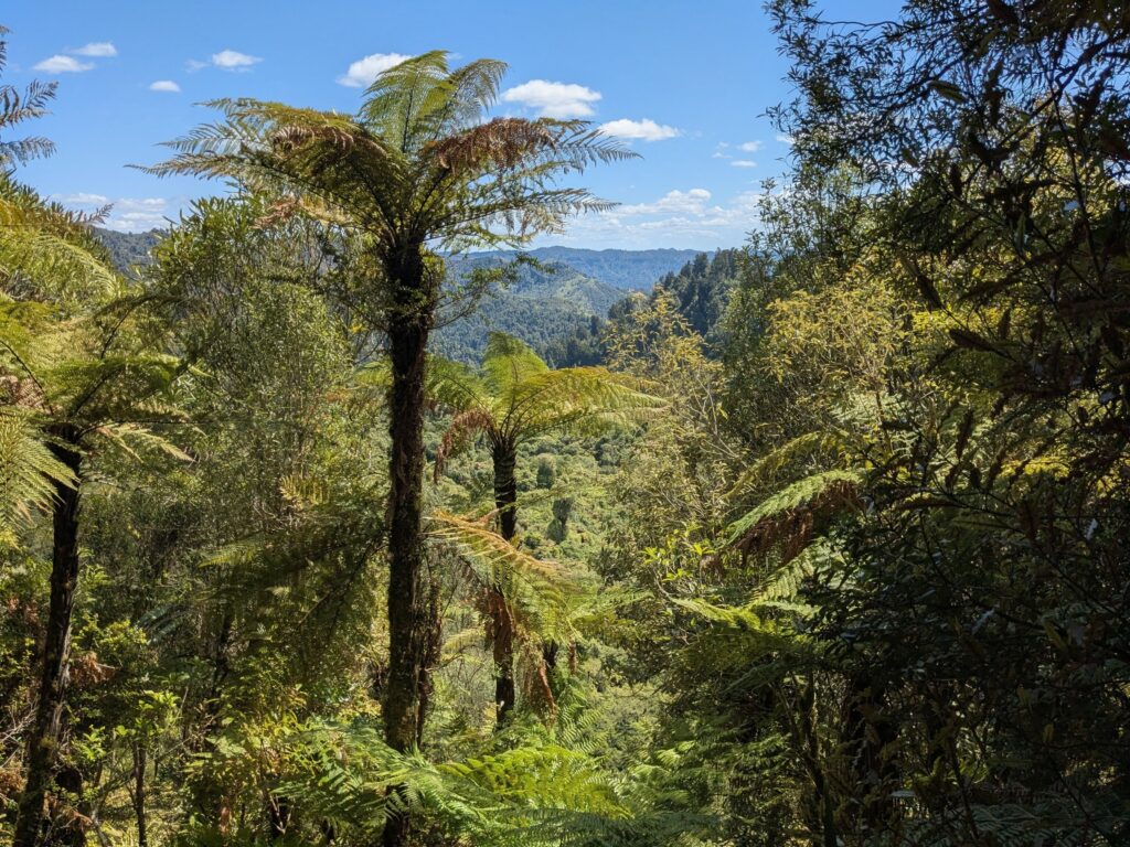At Taranaki Lookout we had a view over the forest to the west towards Mt. Taranaki, which we could not see though the skies seemed clear in that direction.