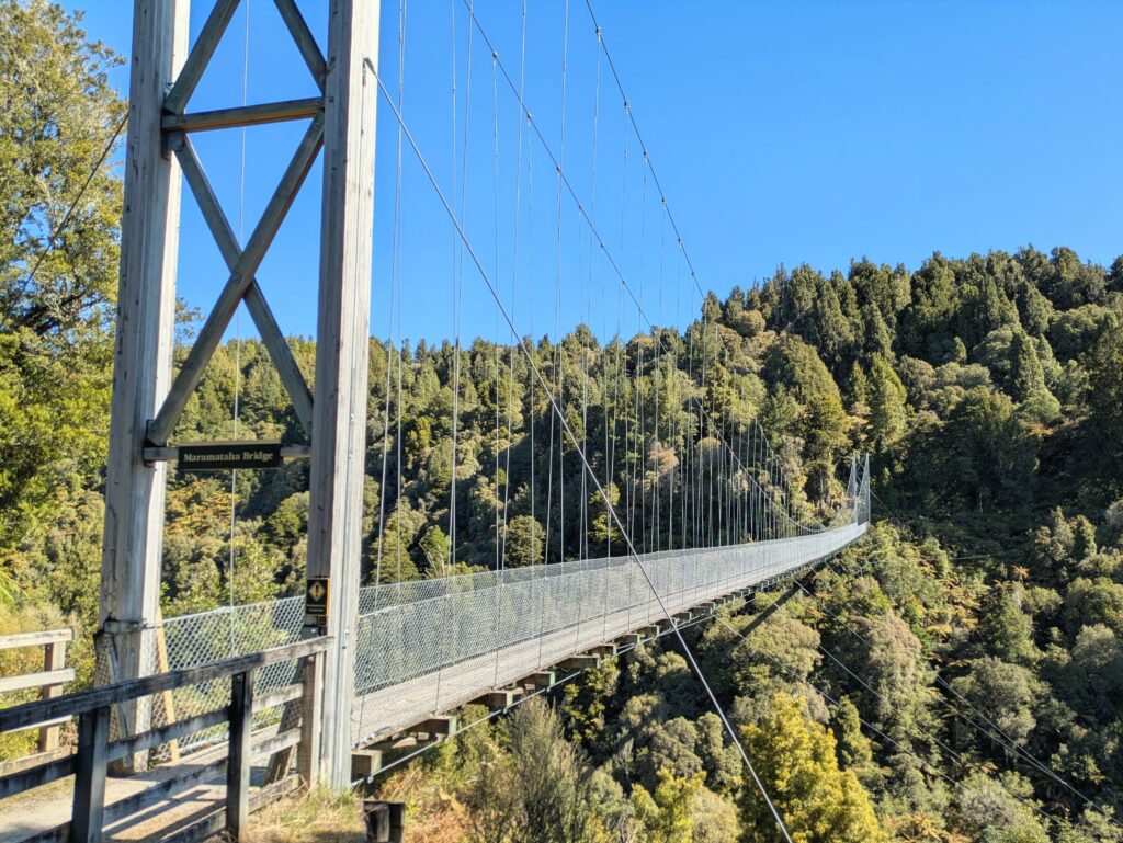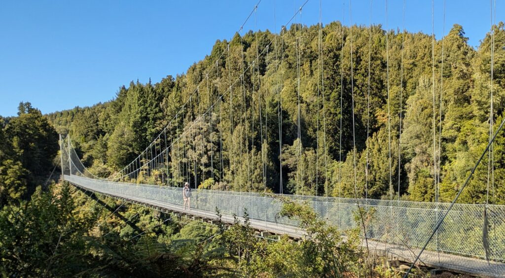 We decided to drive a loop route back to the B&B and detour into the Pureora Forest Park to revisit the Maramataha Suspension Bridge along the Timber Trail bicycle route.