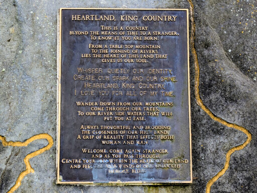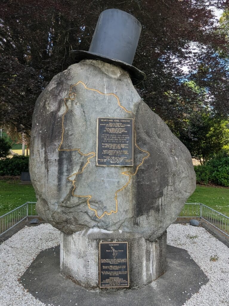 This monument in the town park bears the outline of King Country and a top hat symbolizing the method by which the boundary was established!