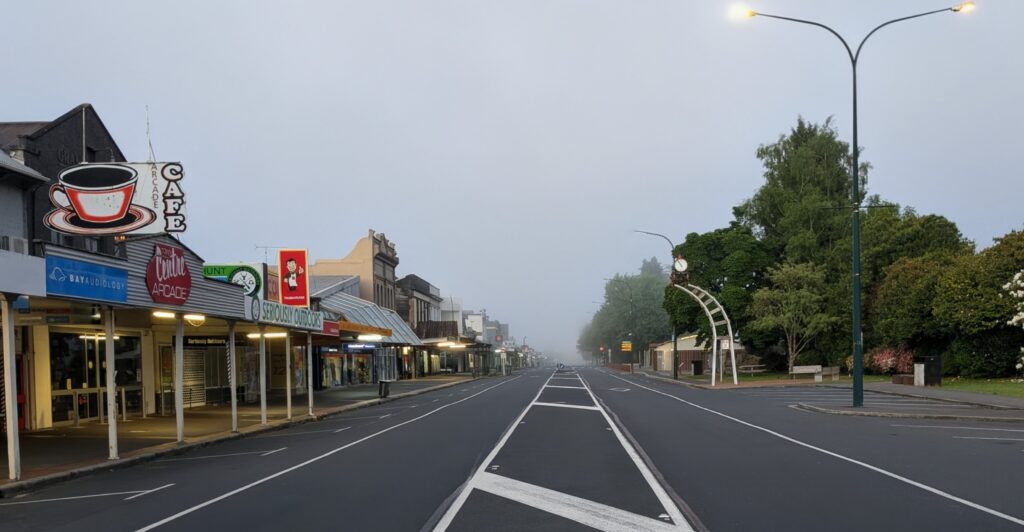 Main street at 6am, quiet and almost empty. The Bakery was open for a hot meat pie breakfast!