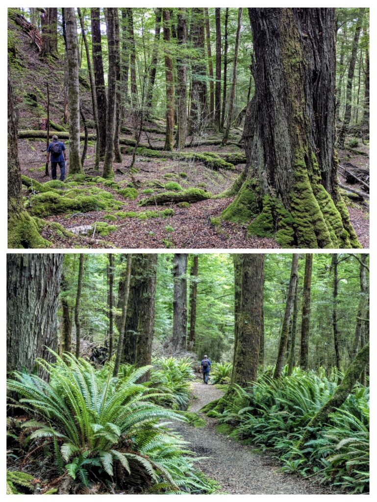 We continued up the road and stopped at Lake Gunn to walk the nature trail through the huge moss covered beech trees. NZ beech trees are very distantly (about 40 million years ago) related to northern hemisphere beech trees. NZ beeches are evergreen, not dropping their leaves en-mass in fall.