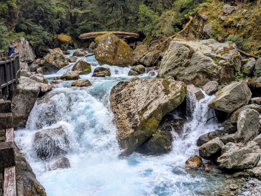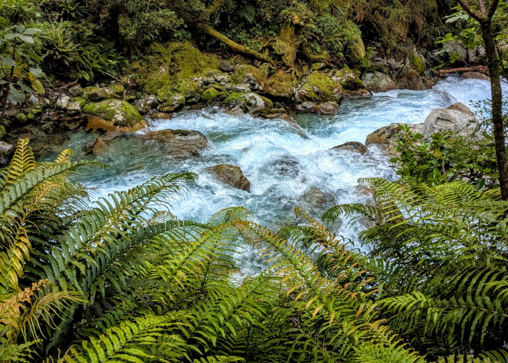 We walked a trail along the Waiau river that flows between Lake Te Anau and Lake Manapouri, through a beech forest of huge trees shading the forest floor covered in ferns or emerald green moss.