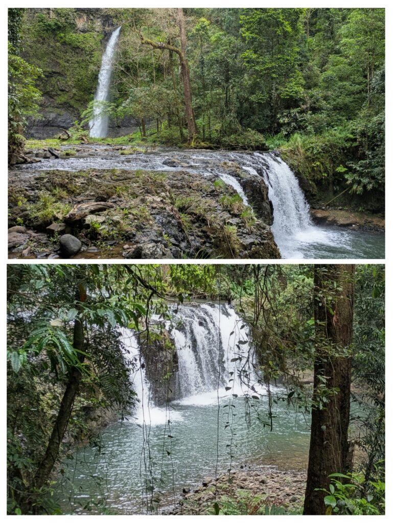 About 3km into the rainforest we approached the 2-tiered Nandroya Falls.