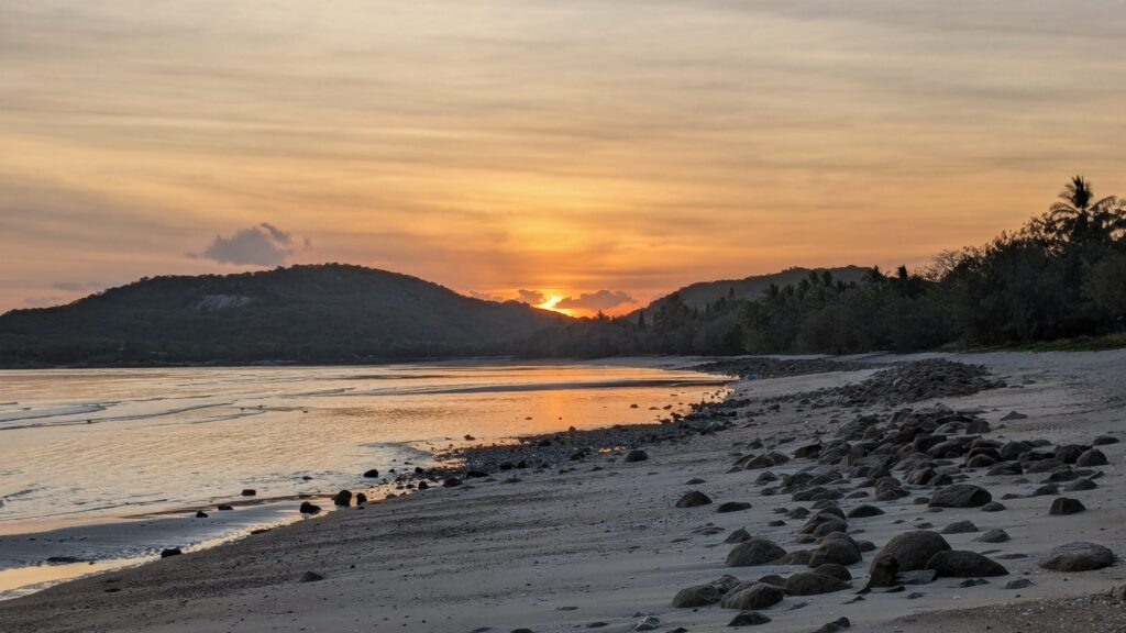We’re in Bowen, in the Whitsunday Region of the Queensland coast, on an inlet of the Coral Sea. We got up early for another sunrise adventure!