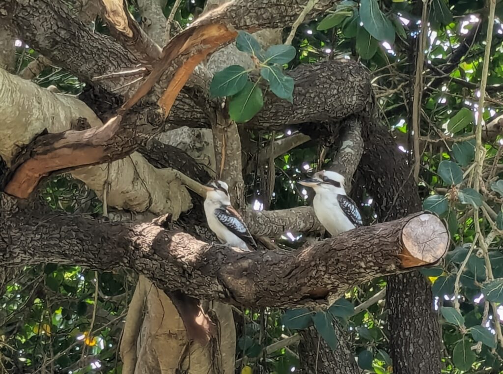 We heard and then spotted a family of kookaburras along the walkway. I wanted to video them to get their unique calls, but they shut up as soon as they knew we were watching them!