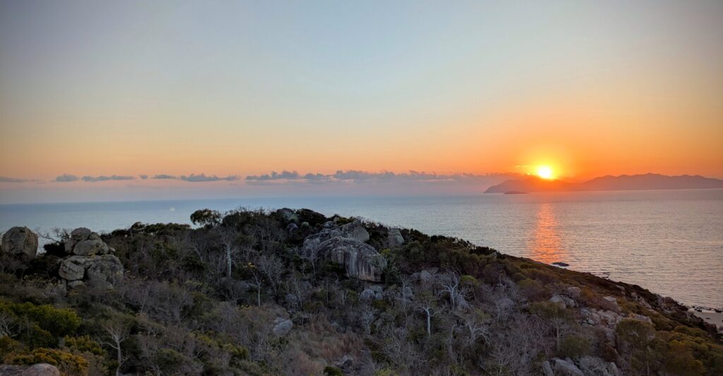 The sunrise looking towards the Whitsunday islands, about midway along the Great Barrier Reef.