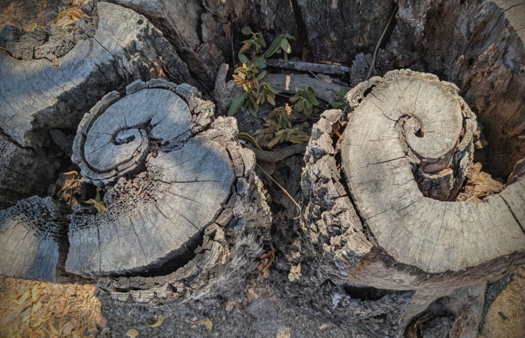 An interesting stump of a tree along the hike to the sunrise viewpoint.