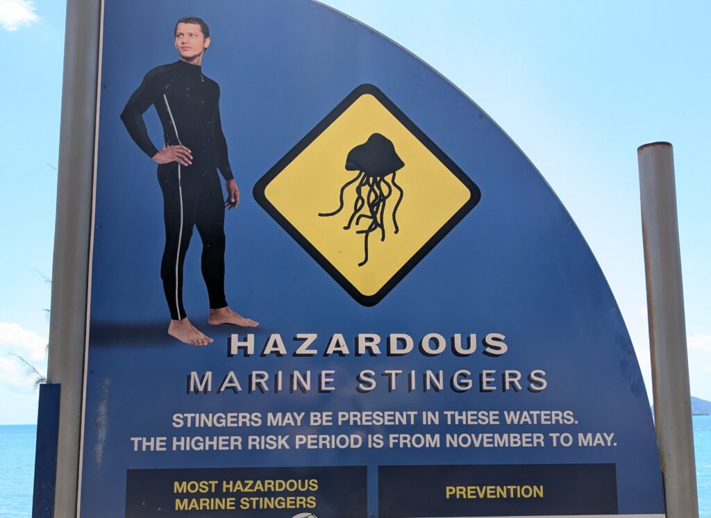 The reason for a ‘stinger net’ is the seasonal influx of deadly jellyfish (of course they’re deadly, it’s Australia!). It is recommended that if you decide to enter the water from November to May you should be completely covered in a wet suit to avoid the deadly stings of jellyfish!