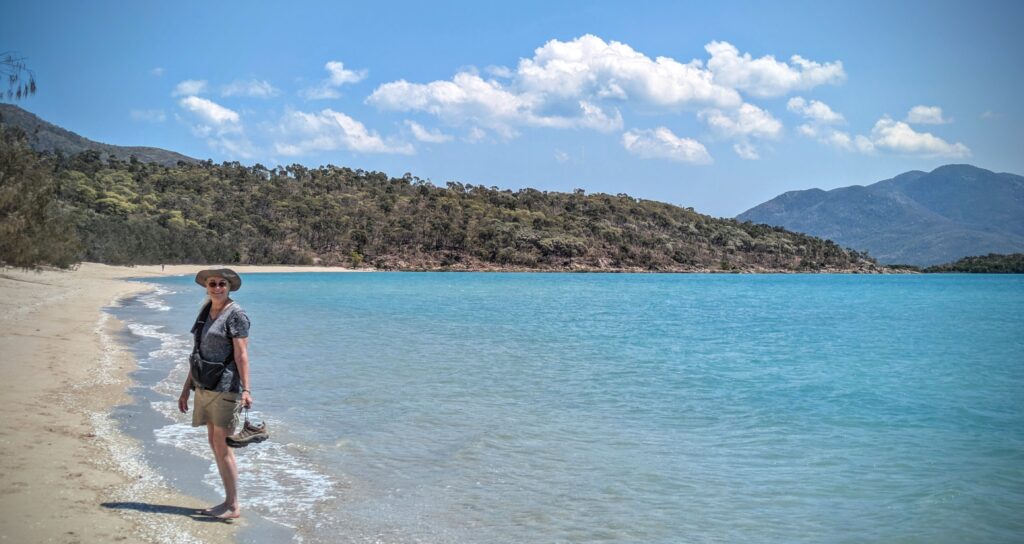 After our breakfast we went for a drive to Airlie Beach where the ferry to the Whitsunday Islands is. The town was way too crowded and touristy for us, so we headed to a quieter, more remote town at Dingo Beach. No dingos, but a great beachside bar & motel and a pristine tropical beach!