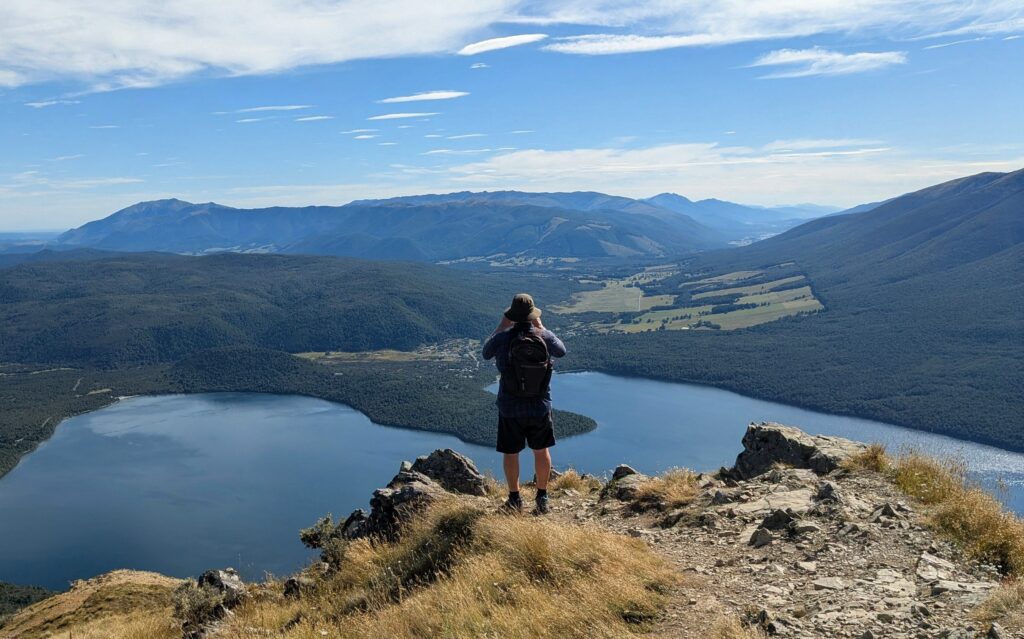 Above treeline is the Relax Hut, constructed by the Nelson Ski Club in 1957. Beyond the hut is the Robert Ridge Route and warnings “That was the easy part”! We chose to take Paddy’s Trail down the mountain, but out in the open under the sunny sky.