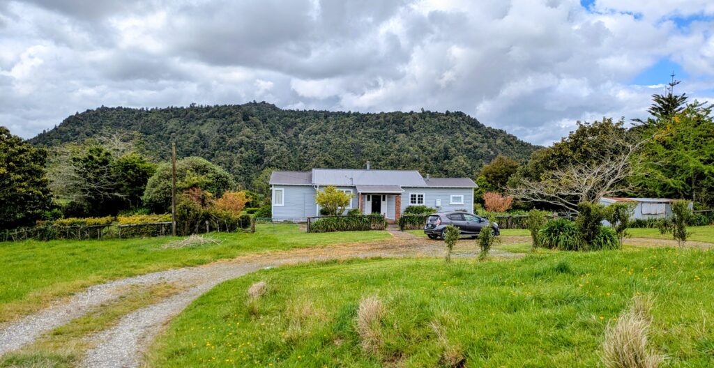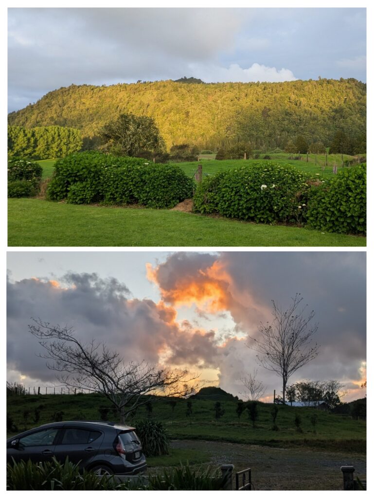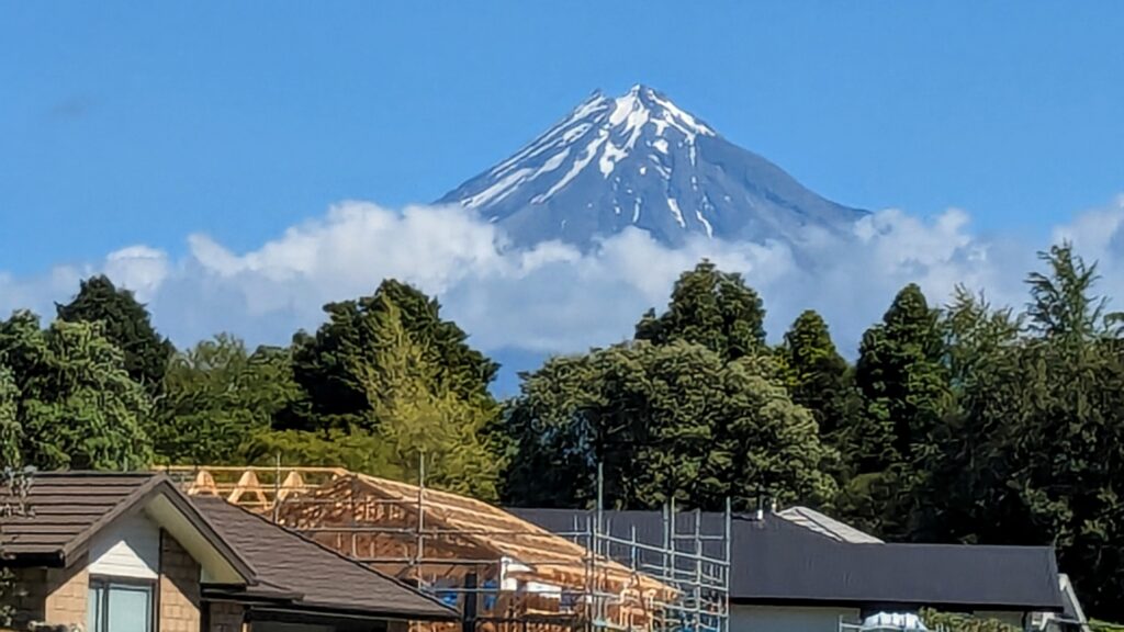 From the front door of the B&B on a good day, Mt. Taranaki can be seen above the neighborhood!