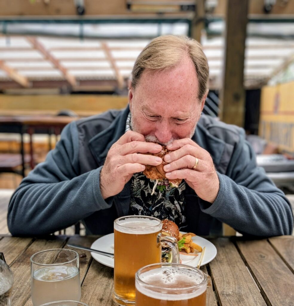 We made it safely down the road and enjoyed a wonderful pub meal of burgers and chips with a beer!