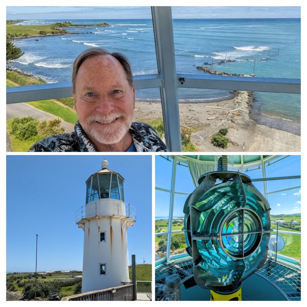Today we drove around the Taranaki cape, stopping to see the replica lighthouse and museum at Cape Egmont Boat Club.