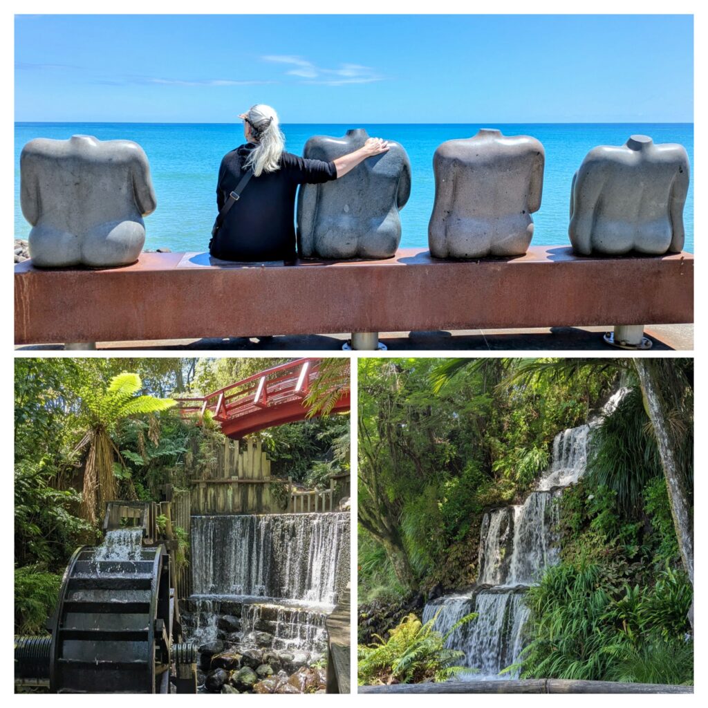Our last day in New Plymouth was yesterday, so we ventured back to the beautiful Pukepura Park and then walked to the waterfront through town and enjoyed a snack at the local Shining Peak Brewery.