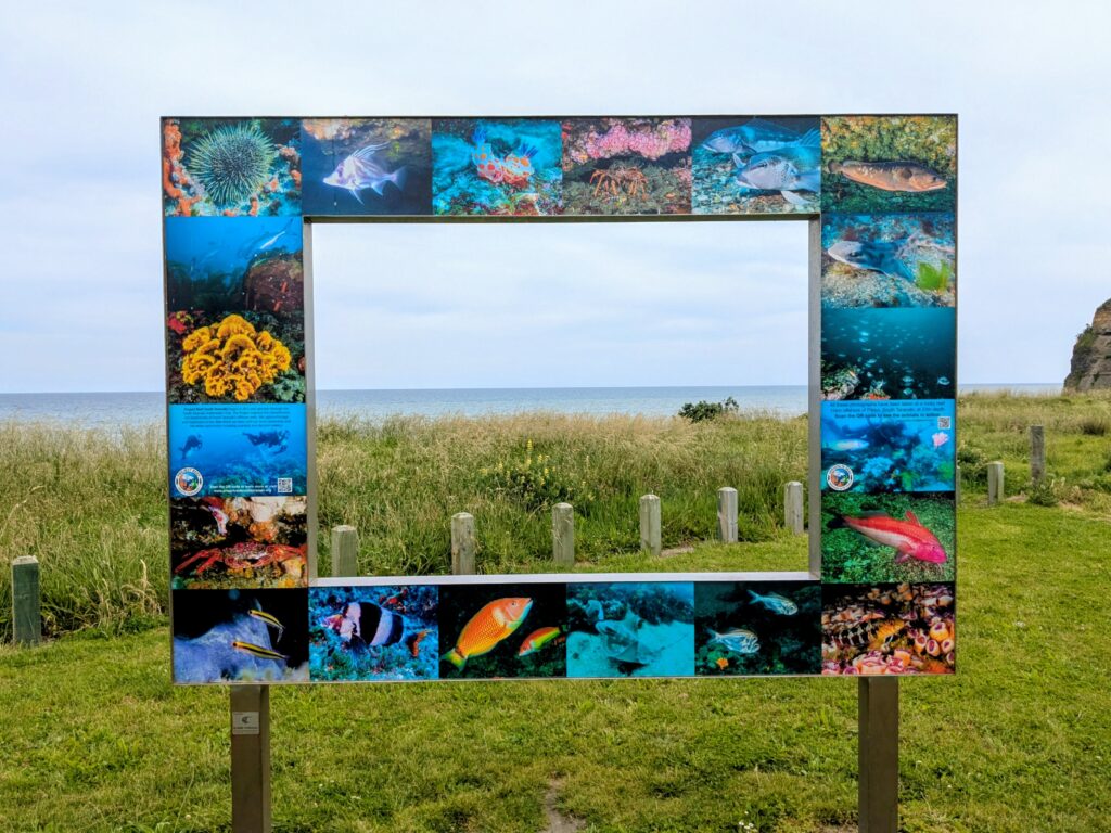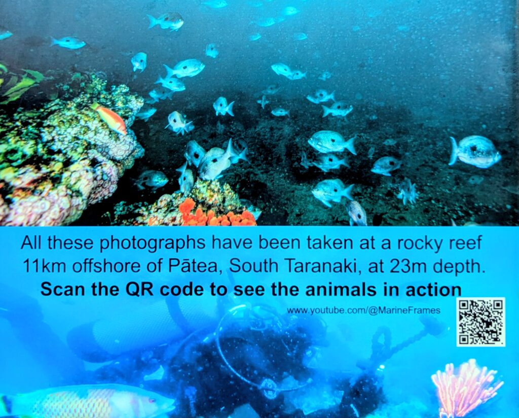 There is a beautiful “Marine Frame” at Ohawe Beach parking area, with pictures of the undersea world off the coast here.