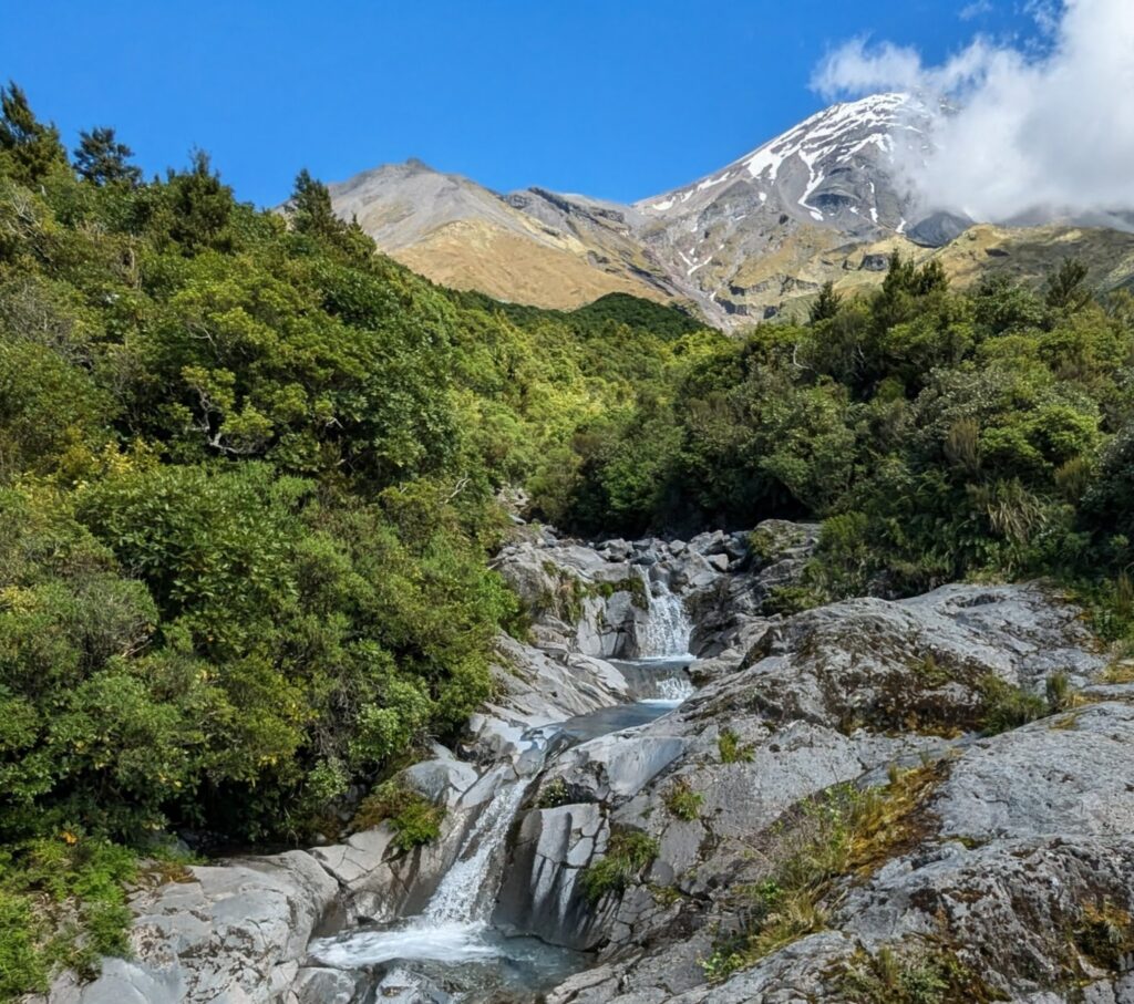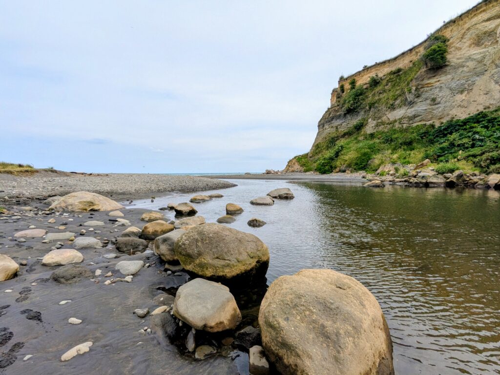 Ohawe Beach starts at the mouth of the Waingongoro River where it flows into the Tasman Sea. The same Waingongoro River that we crossed on a narrow swing bridge near the Waingongoro Tramping Hut up on Mt. Taranaki 6 days ago!