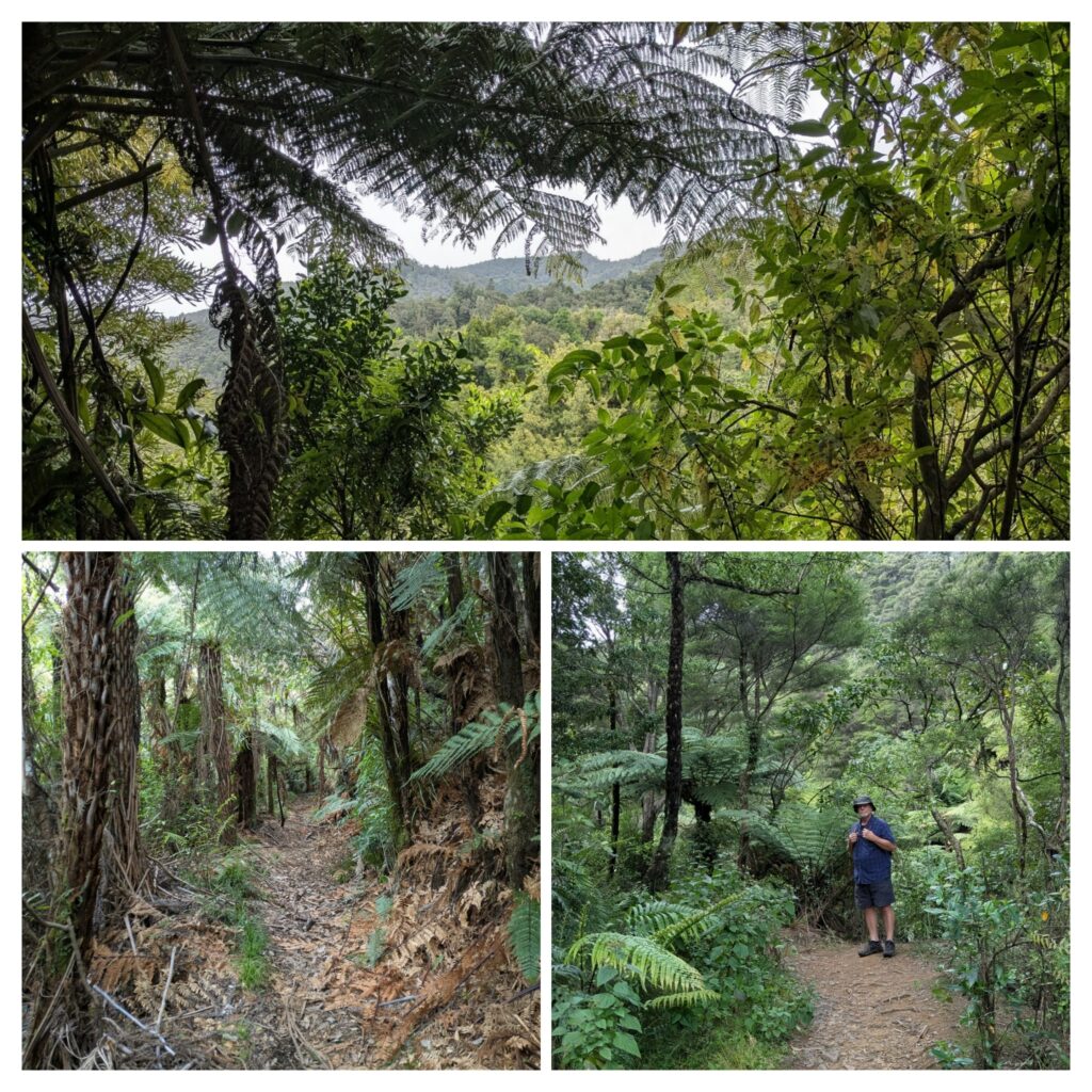 The woods. Hiking under the huge tree ferns, using fallen fronds to cover the muddy areas of track. Enjoying the cool shade and gentle breeze.