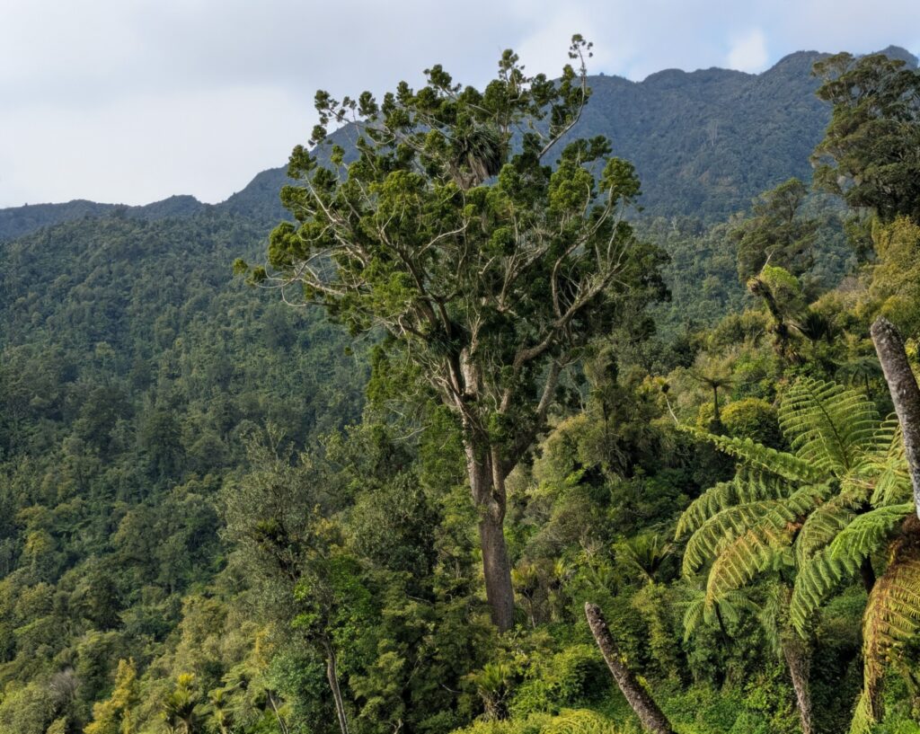 ‘The square kauri’, estimated to be 1200 years old is just meters from the gravel road. A steep, 187 steps trail leads up to the viewing platform next to the trunk, with the huge canopy another 144 feet up!