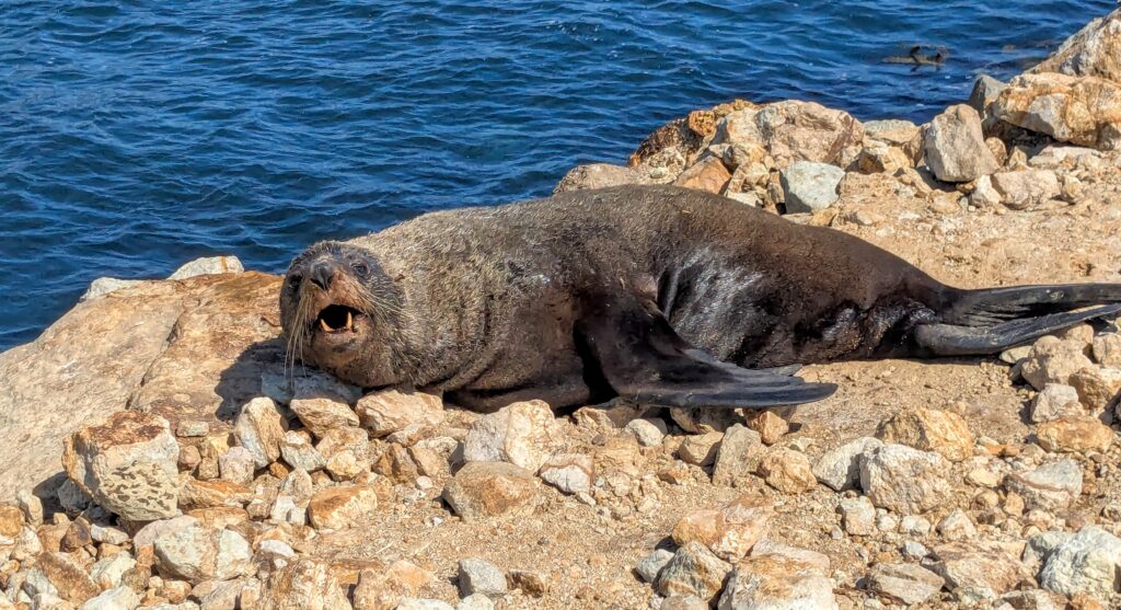 We drove out to the end of the road at Aramoana and walked out onto the manmade ‘mole’ or seawall and joined this sealion basking in the sun.