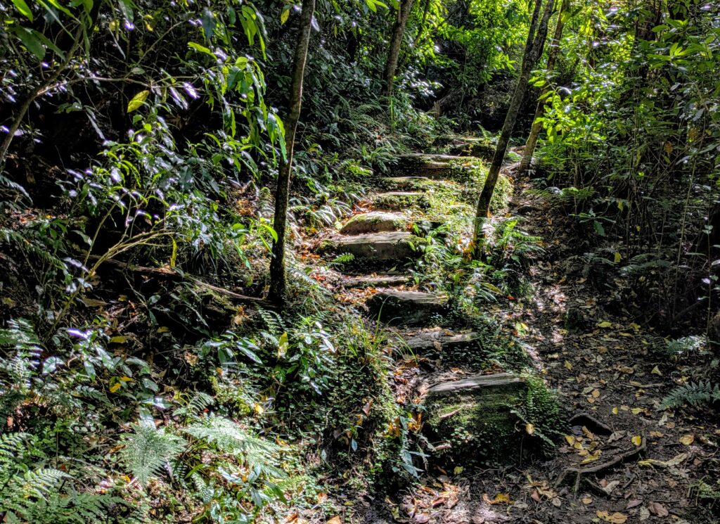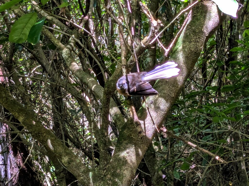 We were accompanied by fantails flitting around us as we stirred up the leaves and sent tiny flying insects up for the birds to swoop around our heads to catch them on the wing!